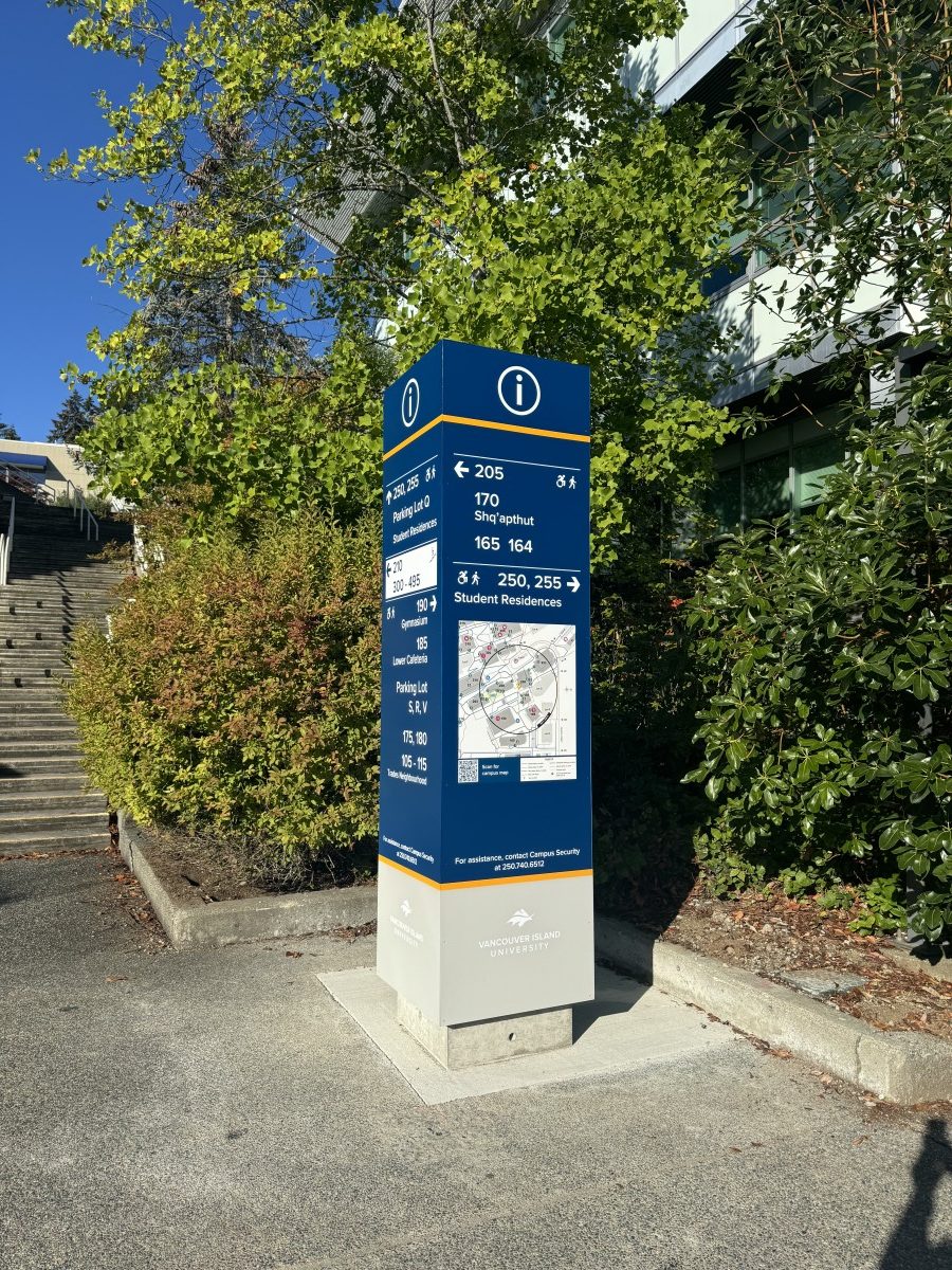 Strategically placed throughout the Nanaimo campus, these 44 signs play a vital role in enhancing navigation, making it easier for students, faculty, staff, and visitors to locate buildings, parking, amenities, and pathways. These custom directional signs reduces confusion, saves time, and contributes to a welcoming campus atmosphere.